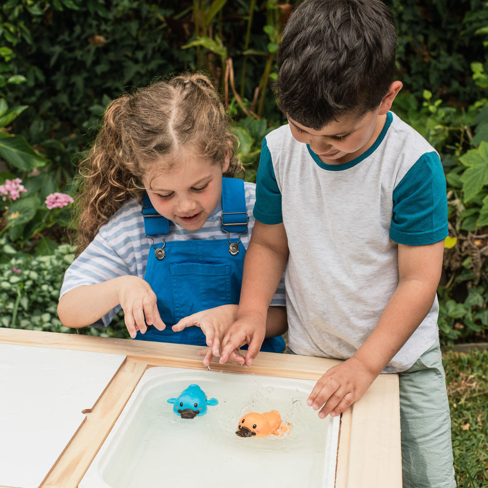 With two adorable swim-ready platypuses in the one set and no batteries required, simply wind them up, release them into the bath and then watch their little platypus arms turn as they race across the water.