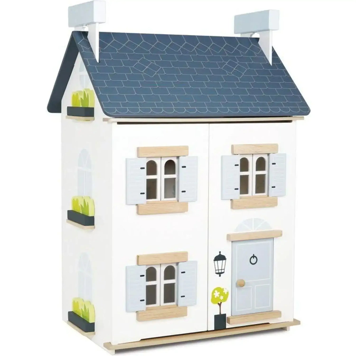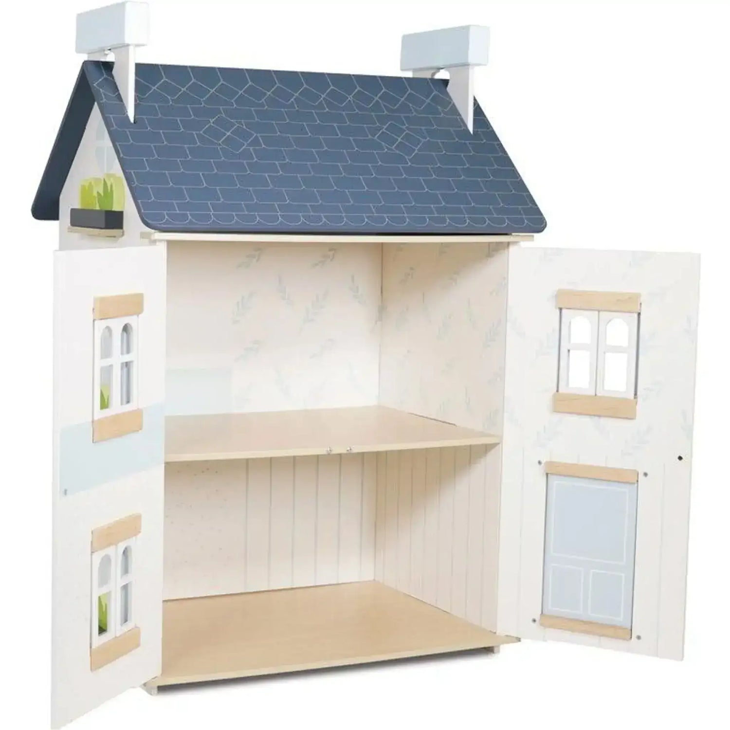 Fall in love with the stunning Sky House. This gorgeous home features two storeys and an attic room that is found in the opening roof. This doll house was designed with gender-neutral features including natural wood, beautiful blues, and unique artwork throughout.