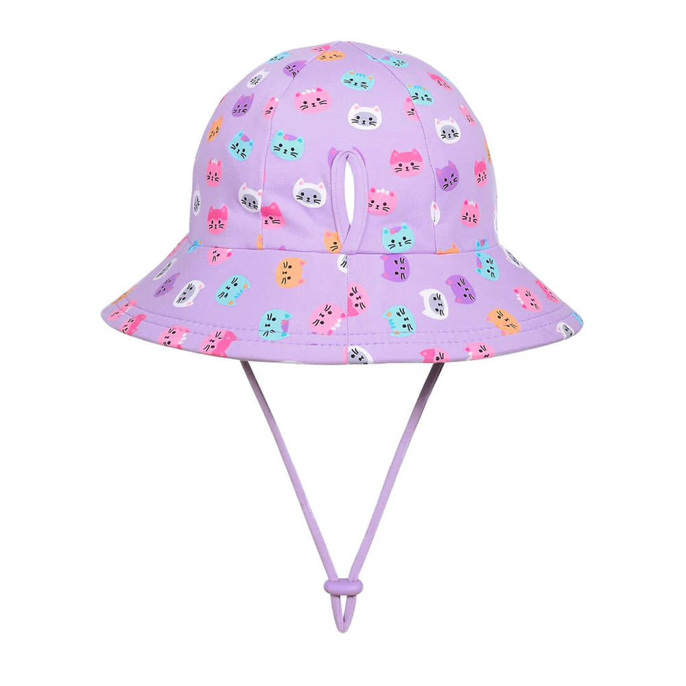 The Bedhead Ponytail Bucket Hat in KITTY is made for kids who want to play hard and stay cool. With a cleverly hidden ponytail slit, this fun-loving sun hat adds breathability and style for carefree outdoor adventures. The lilac base is dotted with colourful kitty faces that wink, smile, and charm their way into every outfit.